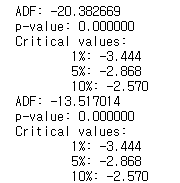 P-value 가 0.05 보다 작아서 두 데이터는 stationary 하다고 말할수있다.