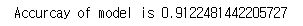 print('Accurcay of model is {}'.format(accuracy_score(y_train, pred)))